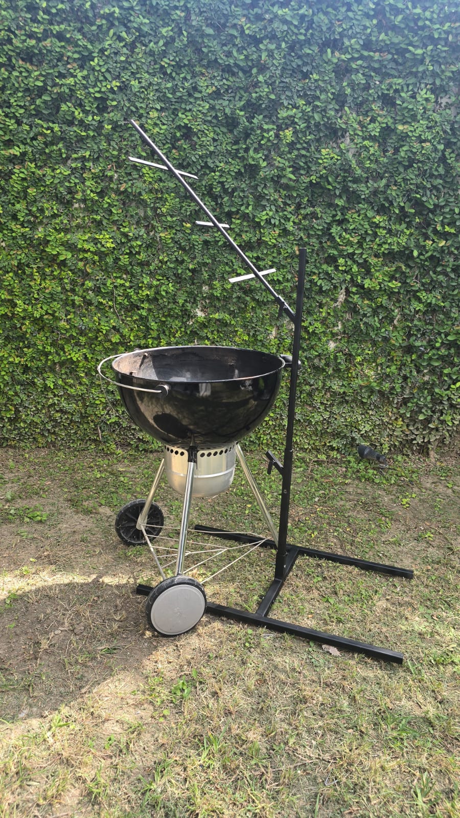 Estaca con base para cocinar a fuego abierto. Funciona con cualquier fuente de fuego o calor. Compatible casi con cualquier parrilla.. Ajustable para colocar la estaca en diferentes alturas con inclinación a 45 grados y lograr una perfecta cocción. Incluye base, estaca portátil, tornillos opresores. Envío disponible a todo México. Tiempo de entrega de 3 a 7 días hábiles de acuerdo a disponibilidad.